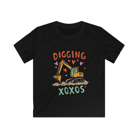 Kids Tee — "Digging XOXOS" Cute Excavator Valentine Shirt