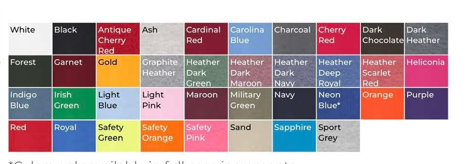 Embroidered on Jerzees or Gildan. TAT is 10-21 business days