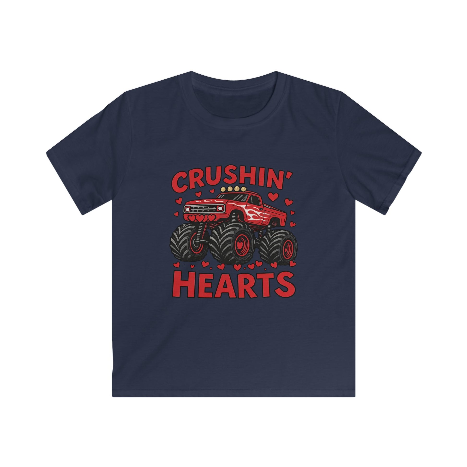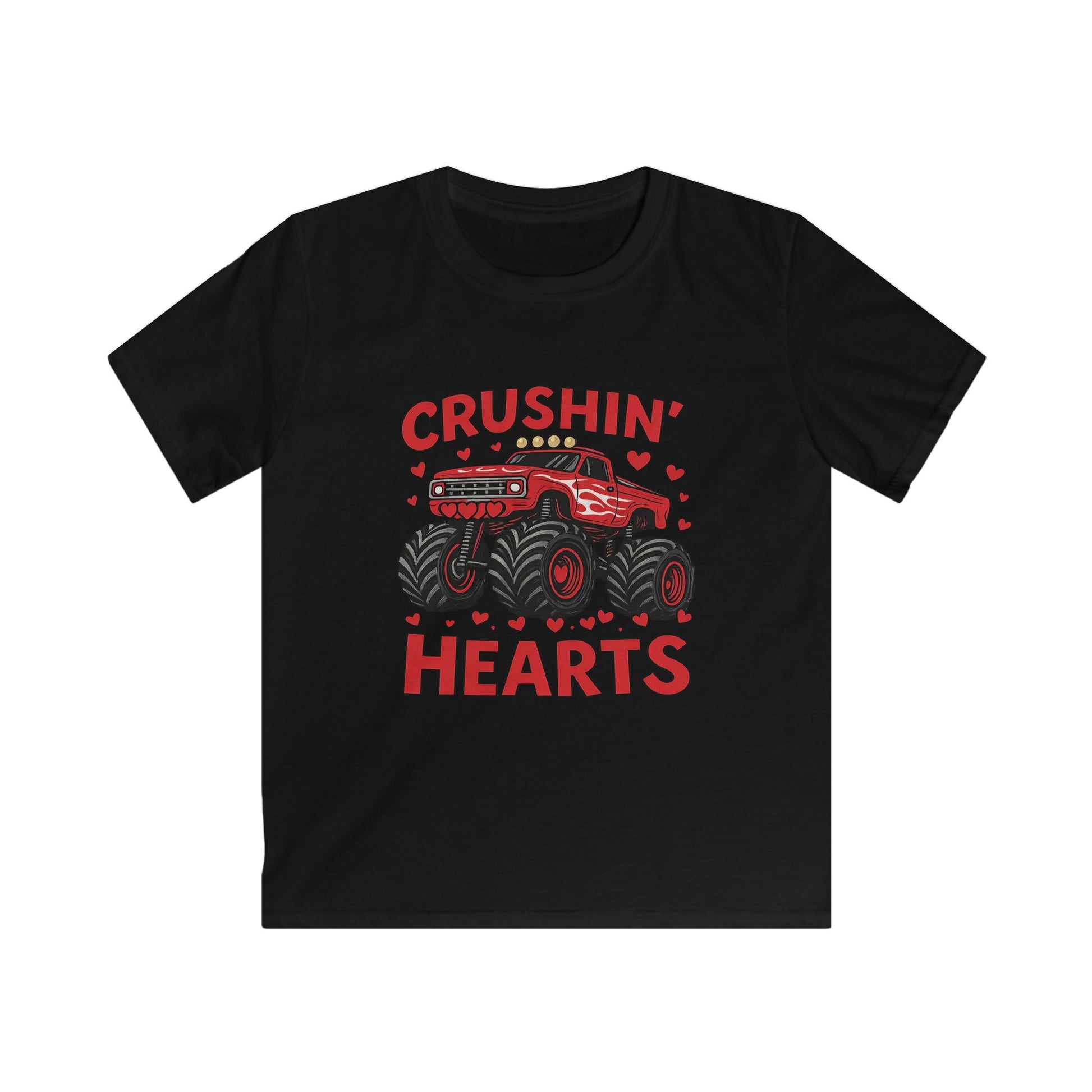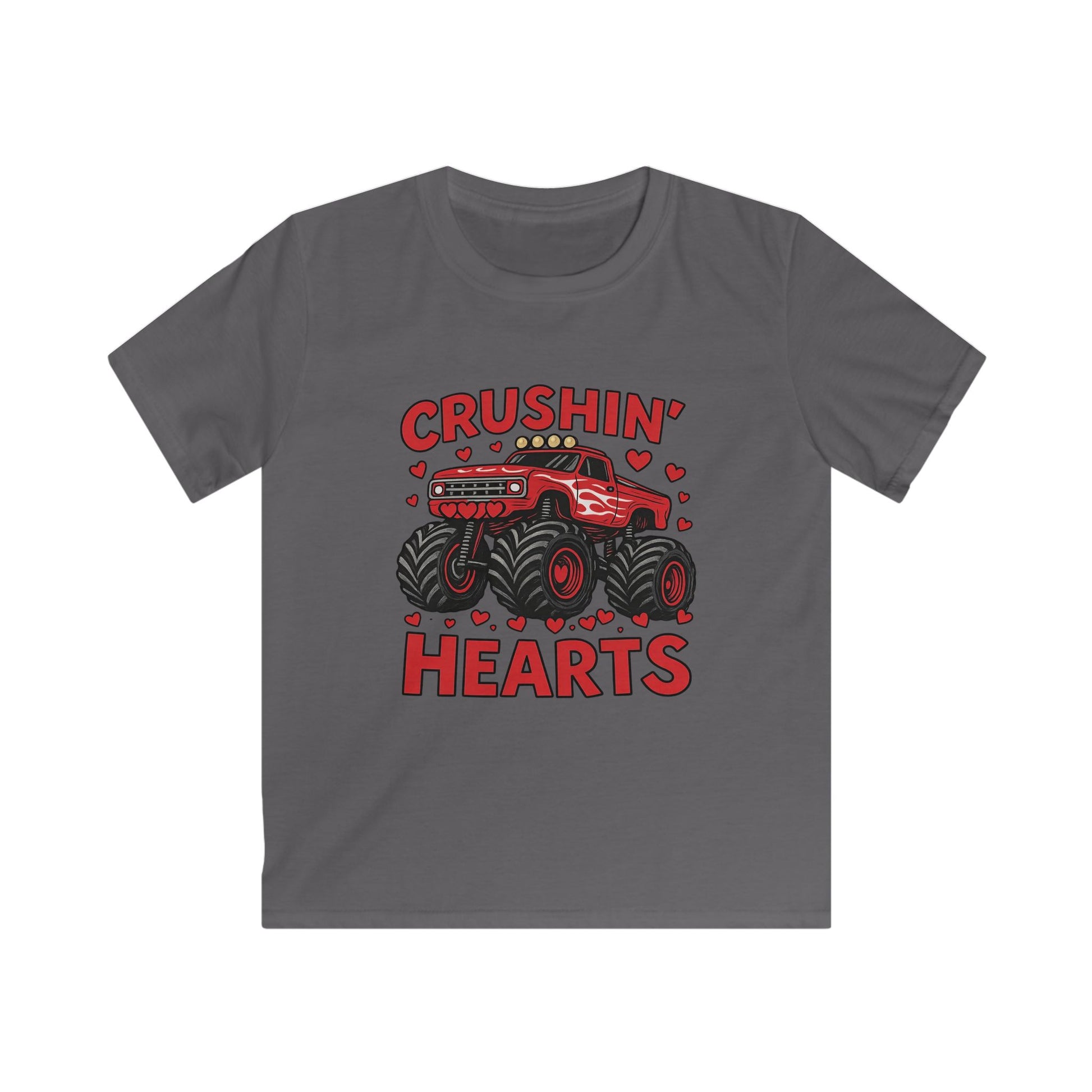 Crushin' Hearts Kids Tee — Red Monster Truck Valentine Shirt
