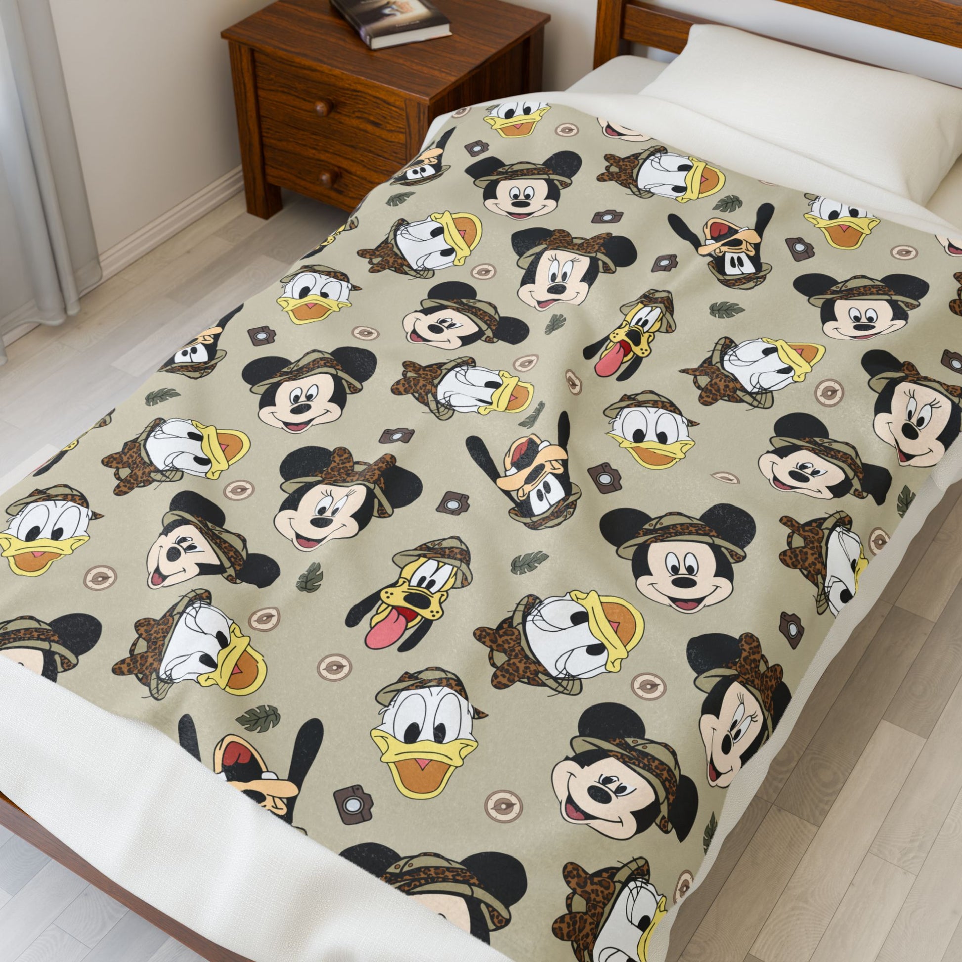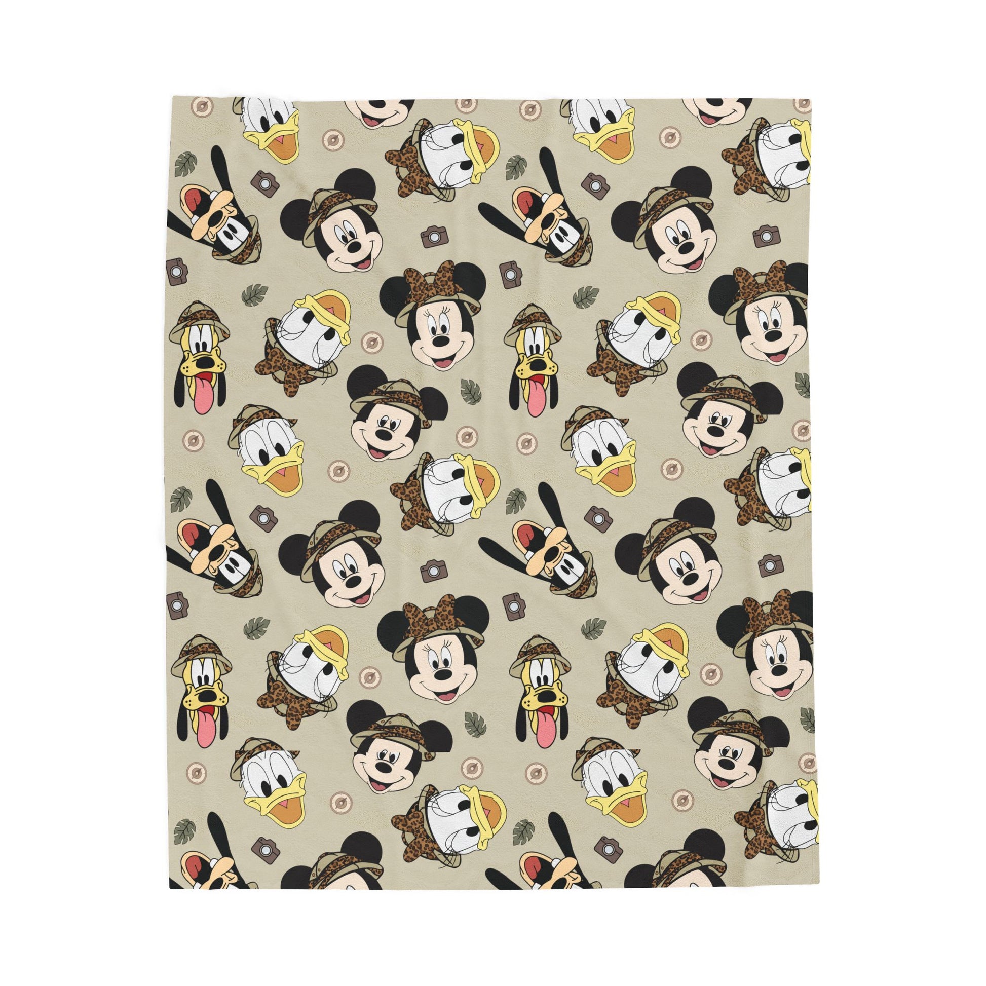 Disney Character Faces Velveteen Plush Blanket — Mickey, Donald & Goofy Pattern