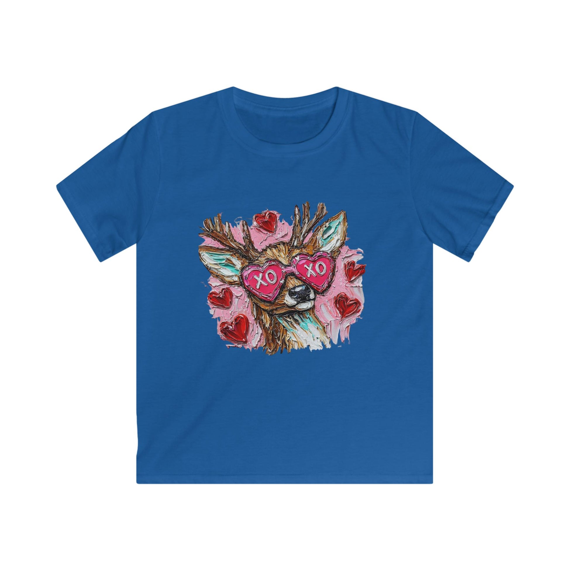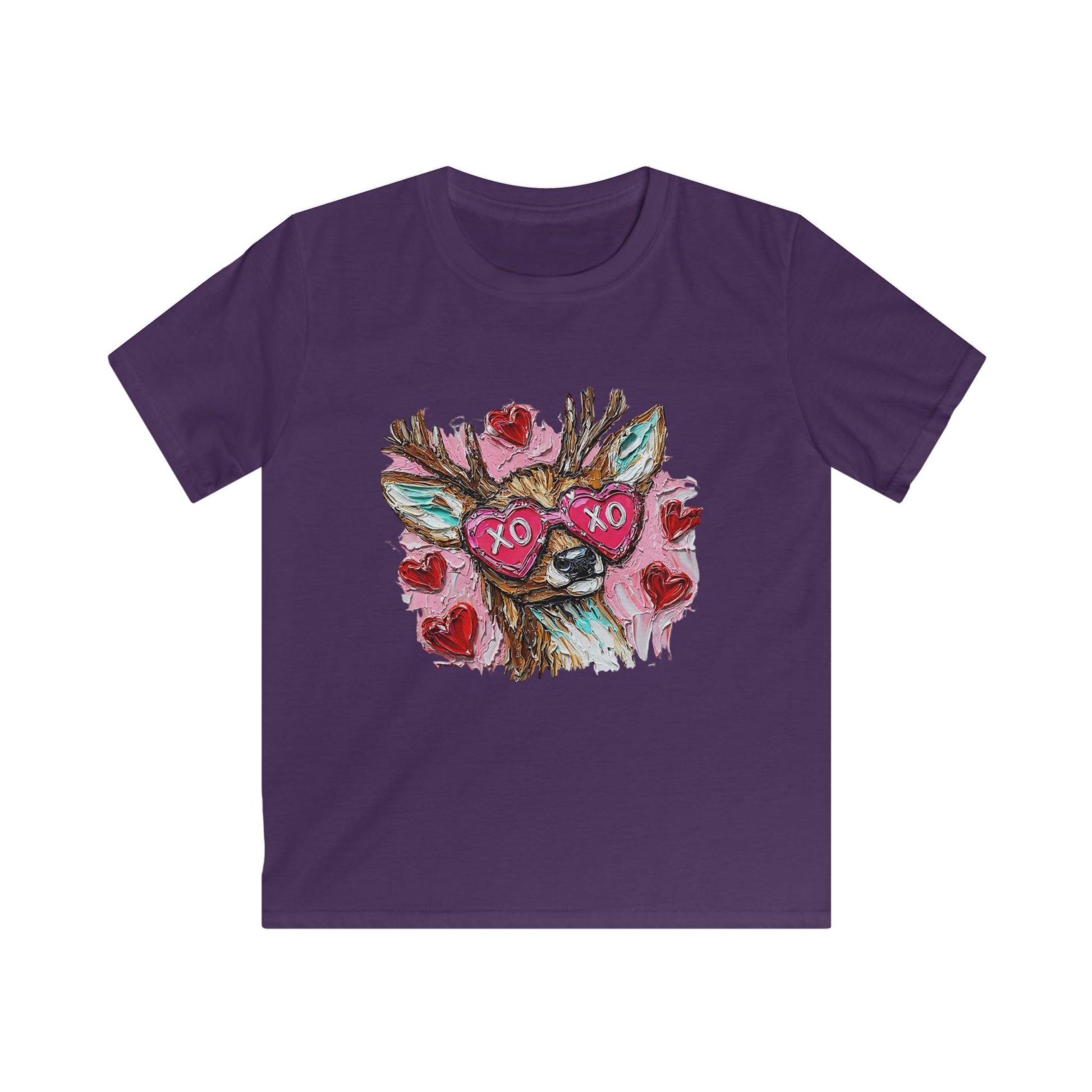 Kids Tee — Cute Deer with 'XO XO' Heart Sunglasses (Valentine's Day Kids T-Shirt)