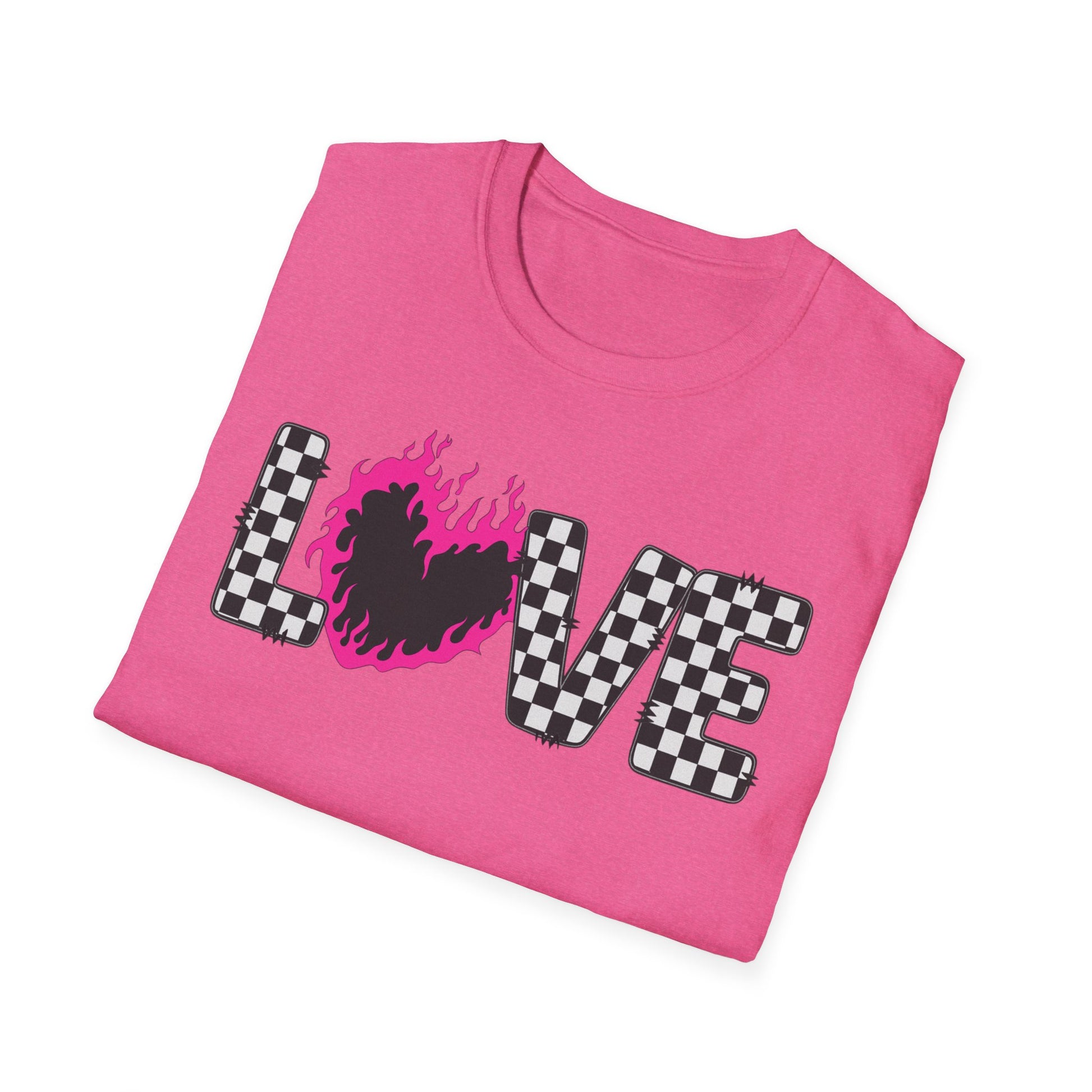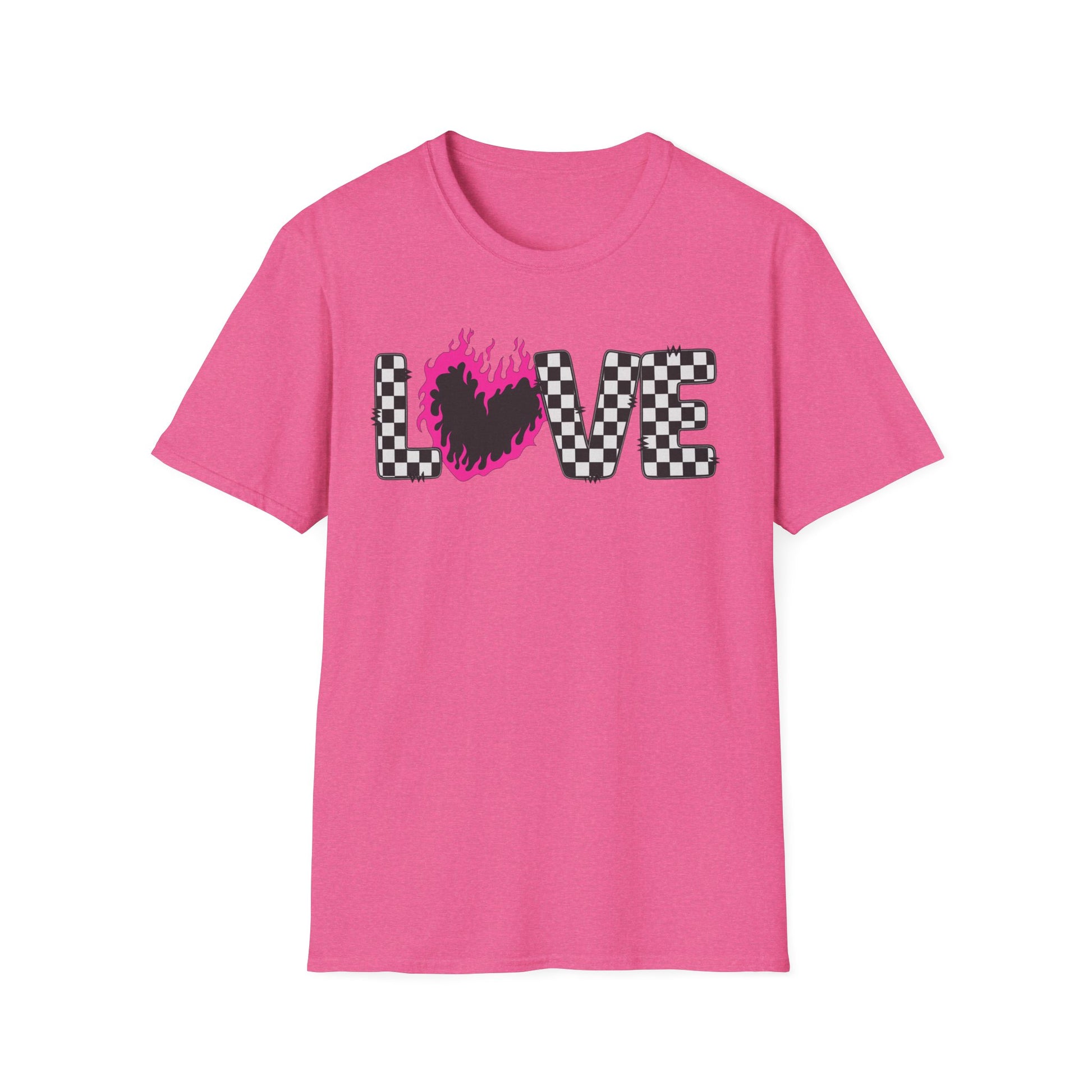 Love Checkerboard T-Shirt — Pink Flame Heart Graphic Tee
