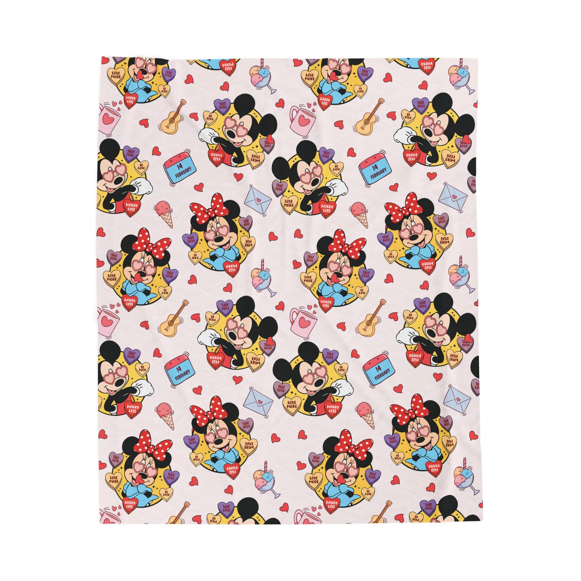 Minnie & Mickey Velveteen Plush Blanket — Cute Heart Pattern Kids Throw