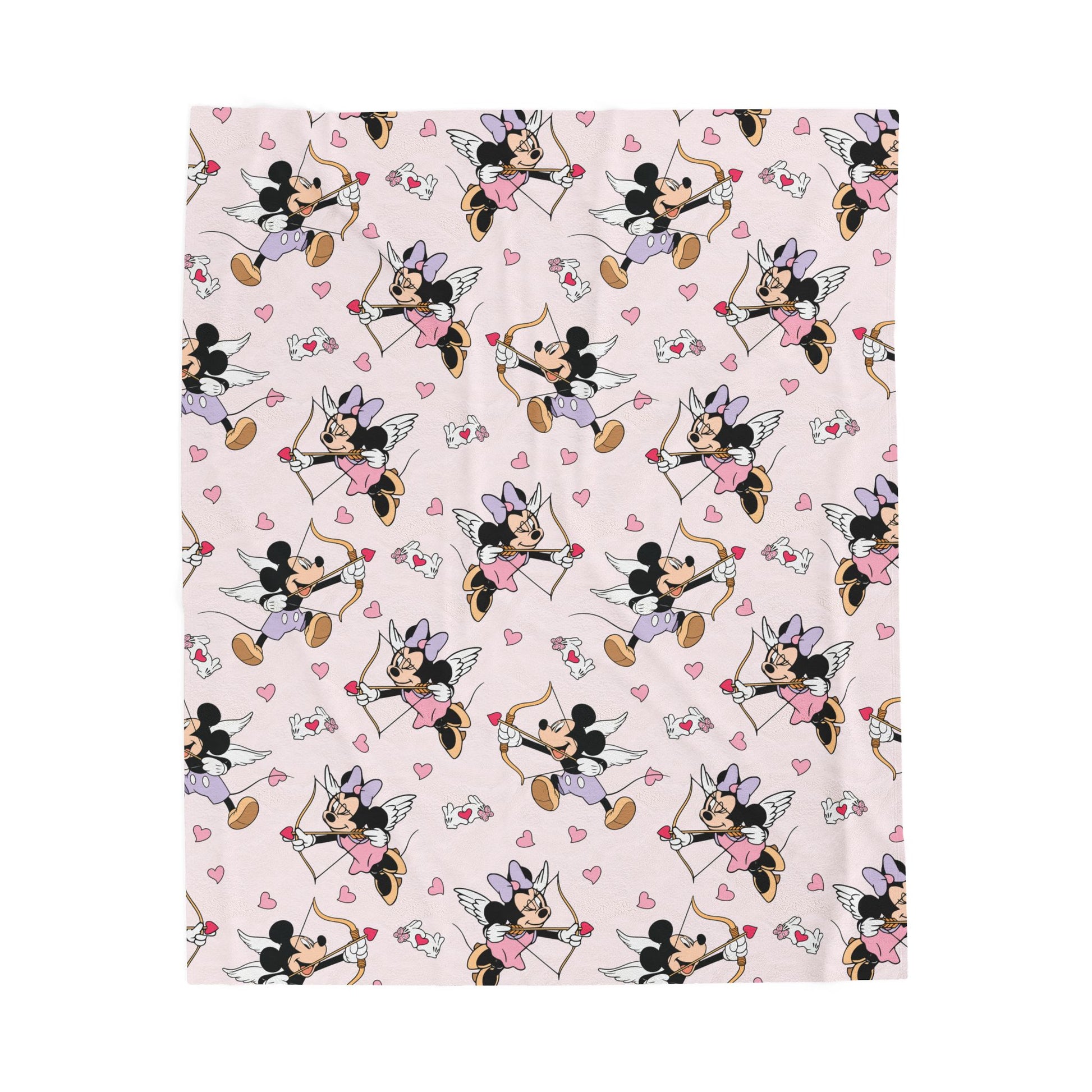 Minnie Mouse Cupid Velveteen Plush Blanket – Pink Heart Pattern, Soft Cozy Throw