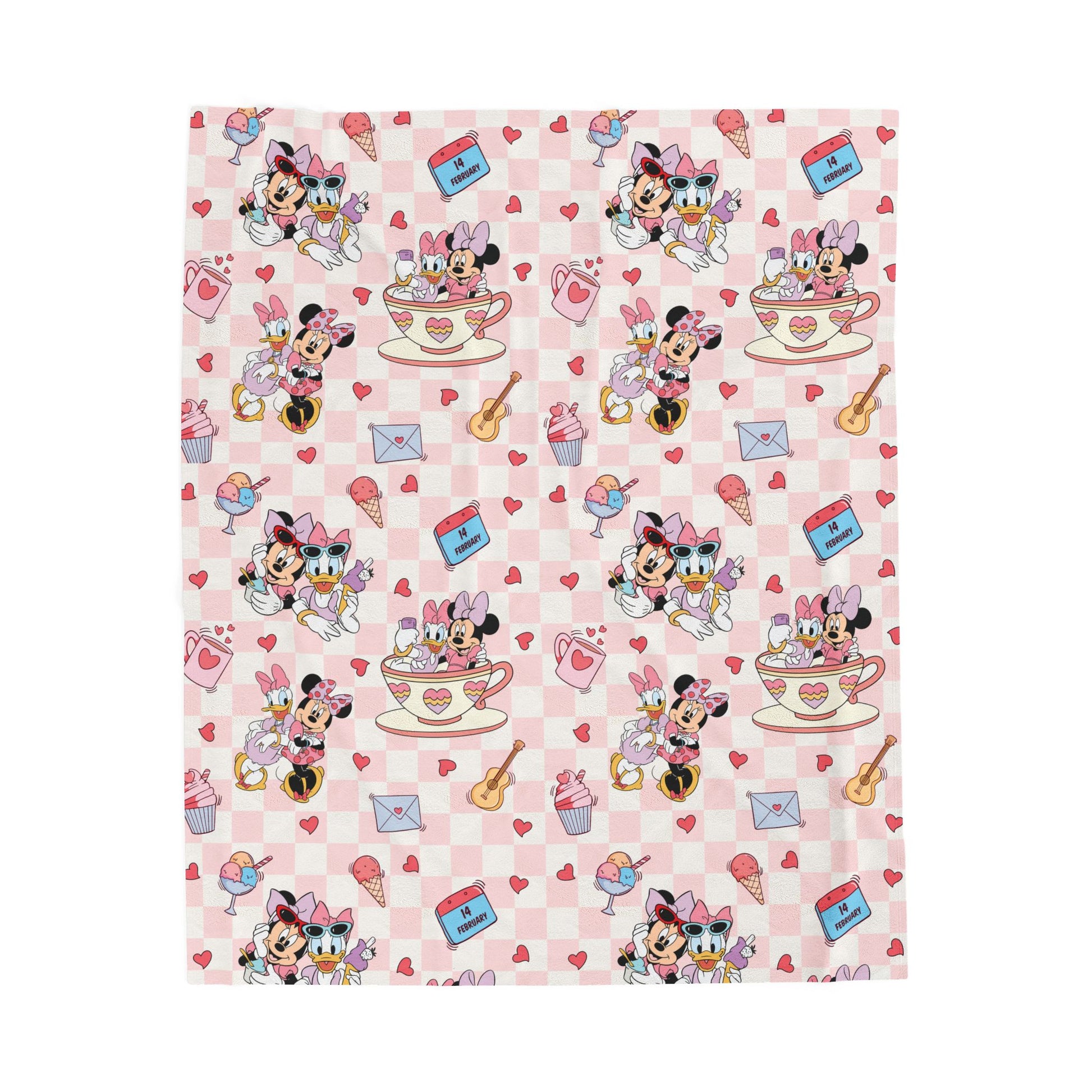 Plush Blanket - Cute Pink Heart Pattern with Kawaii Characters (Velveteen Plush Blanket)